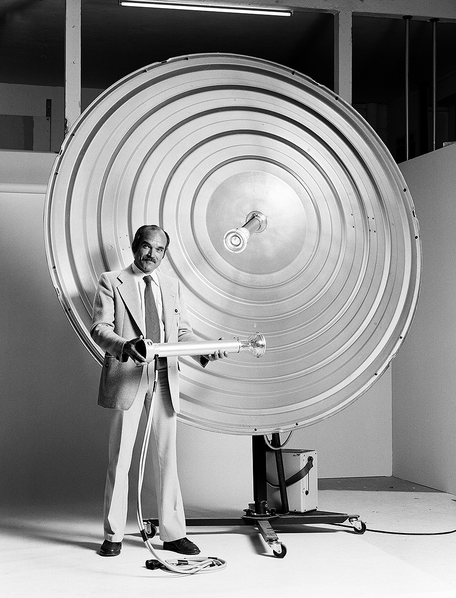 1975 - DIE Neuheit in der Welt der Fotografie: die runden Glasfaser-Parabol- Reflektoren SR-1100 und SR-2200 mit verschiebbarer Blitzröhre im Mittelpunkt.
